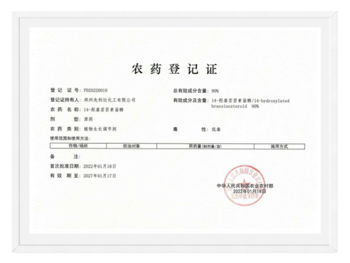 红霸科技境内外证件资源丰富,拥有国内农业农村部正式登记证件52个,正在申请制剂登记产品94个(均为前沿环保型产品),拥有原药正式登记证件1个,正在办理的原药登记证件5个,同时公司拥有境外农药登记证件50个,正在办理的境外农药登记证件16个。