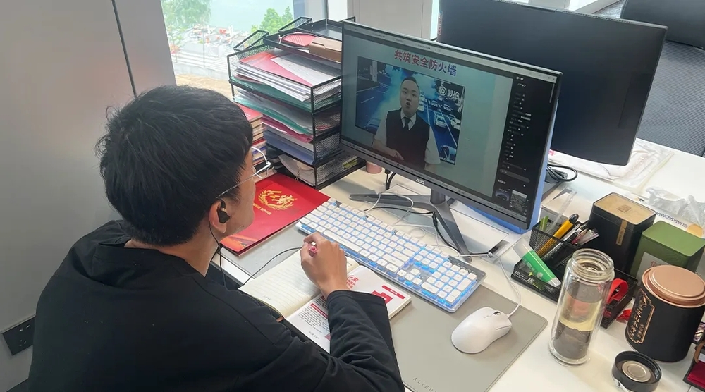 文芳正在认真学习消防知识 3、红霸科技:积极响应,全员参与 作为高新技术企业、规上企业,红霸科技高度重视此次消防安全培训。公司管理层第一时间响应政府号召,组织全体员工线上学习。培训过程中,员工们认真听讲、积极互动,通过线上留言、提问等方式与专家进行交流,确保将每一个知识点学深悟透。培训结束后,公司还组织了内部讨论,分享学习心得,进一步巩固了培训成果。